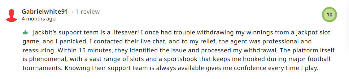 CUSTOMER SERVICE (10/10) We are pretty sure this will be the opinion you find anywhere you look. As of May 2025, Jackbit's customer support is flawless - and that for us is probably the most important criteria.